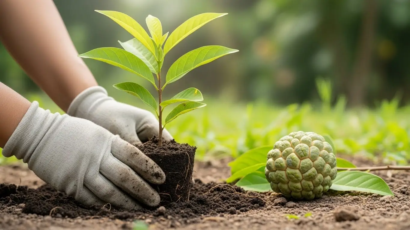 Guia definitivo sobre como plantar pinha (fruta-do-conde). Aprenda o preparo do solo, adubação, poda, polinização manual e controle de pragas passo a passo.